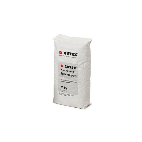 GUTEX Klebe- und Spachtelputz este un adeziv mineral profesional, pe bază de ciment alb armat cu fibre, utilizat în sistemele de termoizolație cu plăci din fibră de lemn. Produsul este potrivit atât pentru lipirea plăcilor izolatoare, cât și pentru realizarea stratului de armare cu plasă în sistemele de fațadă tencuite.